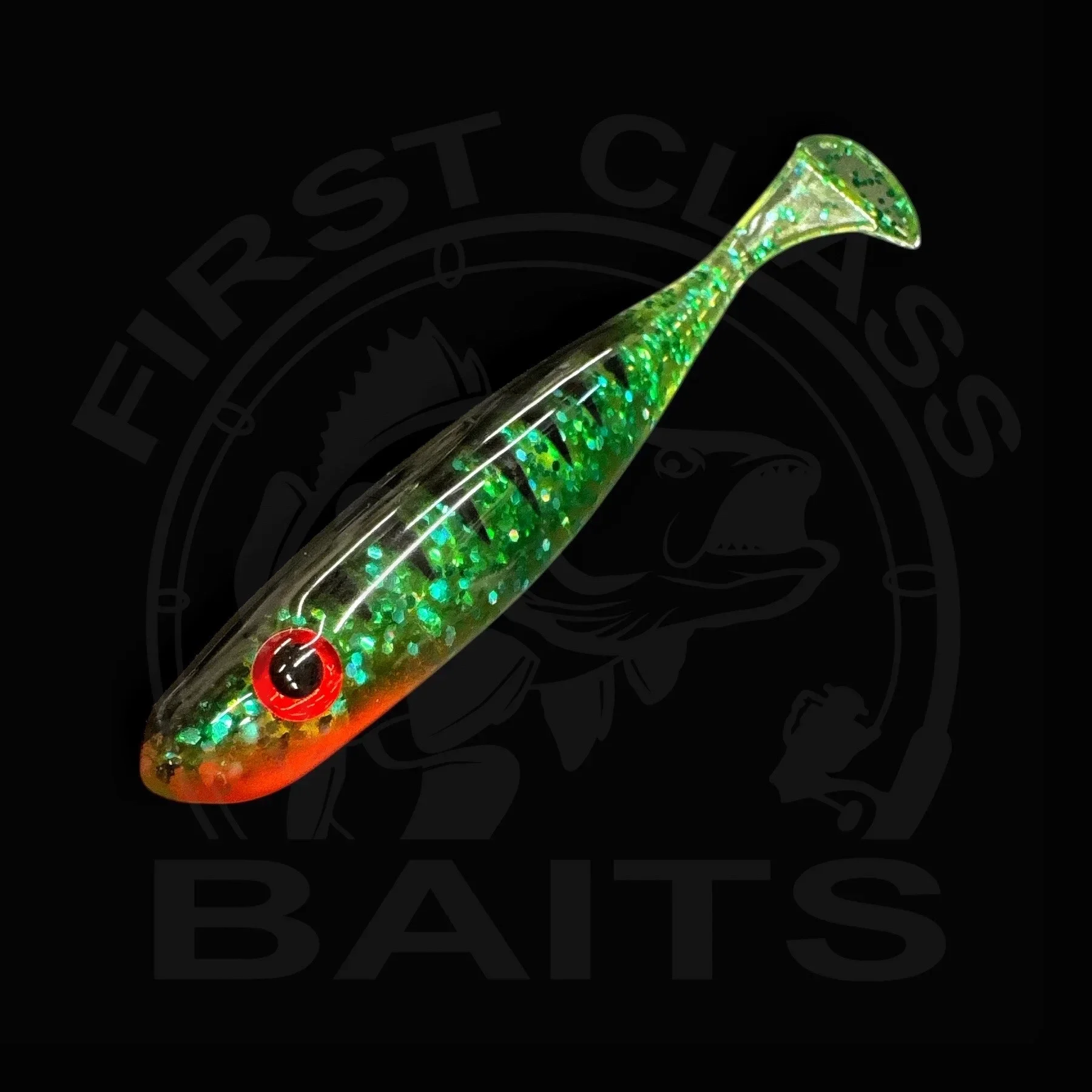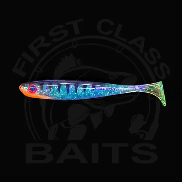 Der Classy Shiner von First Class Baits ist der Gummifisch, den du für Hecht, Zander und Großbarsch brauchst. In 7,5, 10, 12, 14, 16,5 und 18 cm erhältlich, punktet er mit UV-aktiven Farben – perfekt für trübes Wasser und schlechte Sicht.